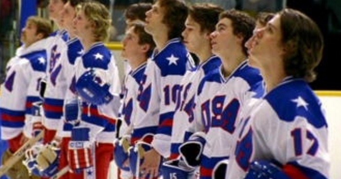 Fantastic sweater worn by actor Mike Mantenuto during the pre-Olympics game vs. Norway and the famous "Again!" scene.