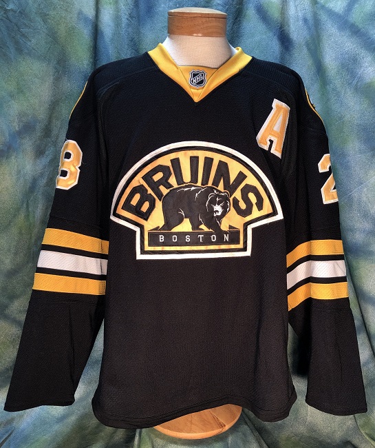 This sweater was worn during the March 18th game vs. Pittsburgh when Shawn Thornton fought Matt Cooke in retaliation for his hit on Marc Savard. Recchi can be seen on the bench during the fight.
