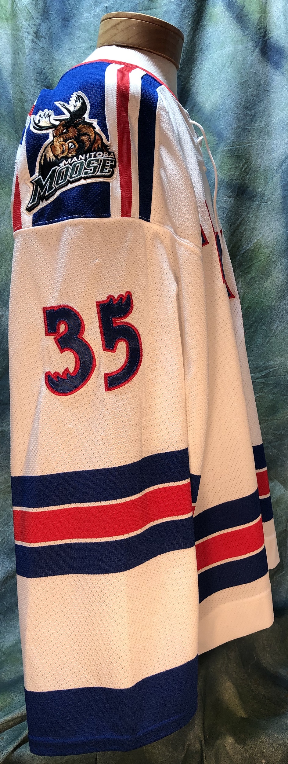 Southdale Lakers tribute sweater. Game played: February 28, 2009 vs. Peoria Rivermen. Schneider was the backup for this game.